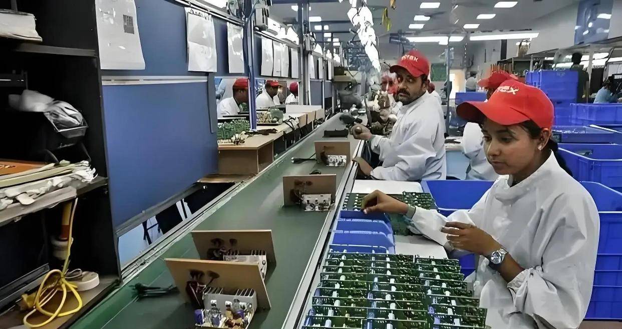 三星、富士康、纬创这些大厂正在印度设厂,干的活其实很简单:把中国产的屏幕、电池、摄像头模组运过去,找当地工人拧螺丝、拆外壳、贴标签,然后出口。
