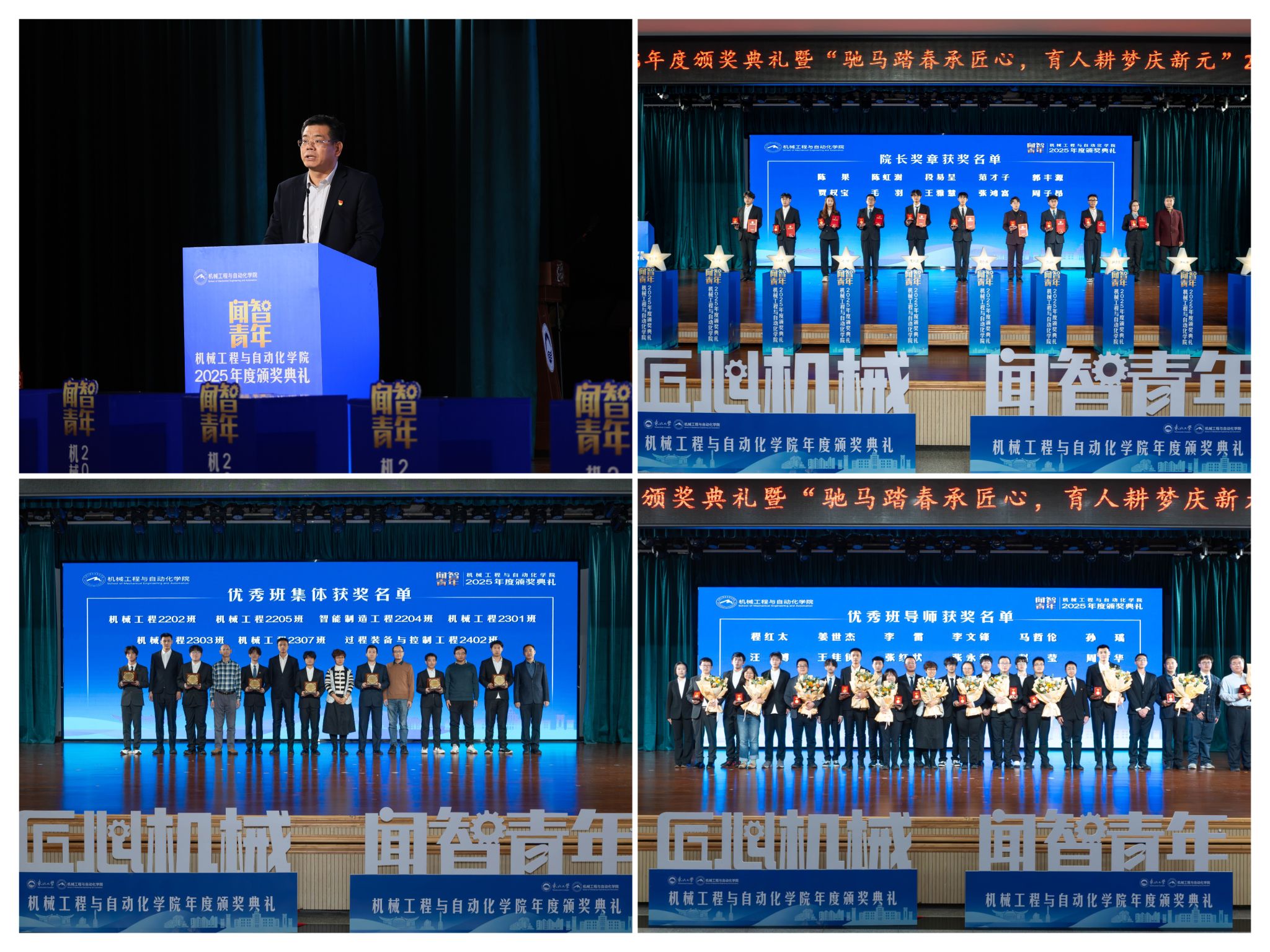 学院党委郝建山正在致辞中系统回首了一年来学院取得的主要成绩。学院积极办事国度计谋,投身深度金属矿智能开采纳配备全国沉点尝试室扶植,并正在环节科研范畴实现标记性冲破,同时,学院成功引进增材取激光制制范畴领军团队,稳步推进学校新增学位点扶植,为久远成长奠基根本。正在人才培育方面,学院学子表示凸起,研究生学术丰盛,正在“挑和杯”“中国国际大学生立异大赛”等多项赛事中斩获国度级项,结业生就业率持续连结高位,展示了全面成长的优良素养。郝建山阐释了“闻智青年”品牌的育人内涵,勉励全体师生胸怀“国之大者”,将小我成长融入“制制强国”计谋,过硬本事,怯于立异创制,勤奋成为担任平易近族回复大任的时代新人。副院长罗忠表扬决定。颁环节分三轮顺次进行。起首颁布的是“院长章”,刘云飞为毛羽等10名正在专业进修、科技立异、社会实践等方面表示杰出的学生颁布章。随后颁布“优良班集体”项,班导师代表为7个正在班风、最初,表达诚挚感谢感动。“院长章”获得者代表毛羽连系科研竞赛取意愿办事履历,讲述了“道阻且长,行则将至”的成长;“优良班集体”获代表豆煜轩分享了班级凝心聚力、共建优秀学风的活泼经验。正在“闻智匠心 共话青蓝”出格环节,优良班导师马哲伦取所带班级学生代表刘定佳同台交换,从分歧视角展示了师生间思惟引领、学业互帮、讲授相长的温情互动,彰显了育人一线的深挚交谊取结实成效。据悉,“闻智青年”是机械工程取从动化学院出力打制的文化育人品牌。本次颁仪式既是年度的集中展现,也是典型树立、激励朝上进步的主要平台,旨正在指导全体学生以先辈为楷模,坚想、夯实专业根本、锻制立异能力,勤奋成长为具有家国情怀、全球视野取创制活力的杰出工程人才,为学校“双一流”扶植和高质量成长注入芳华力量。